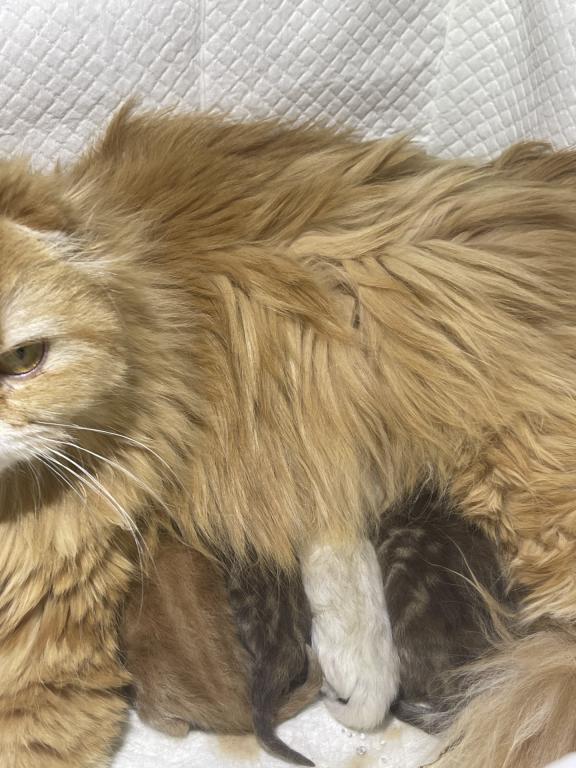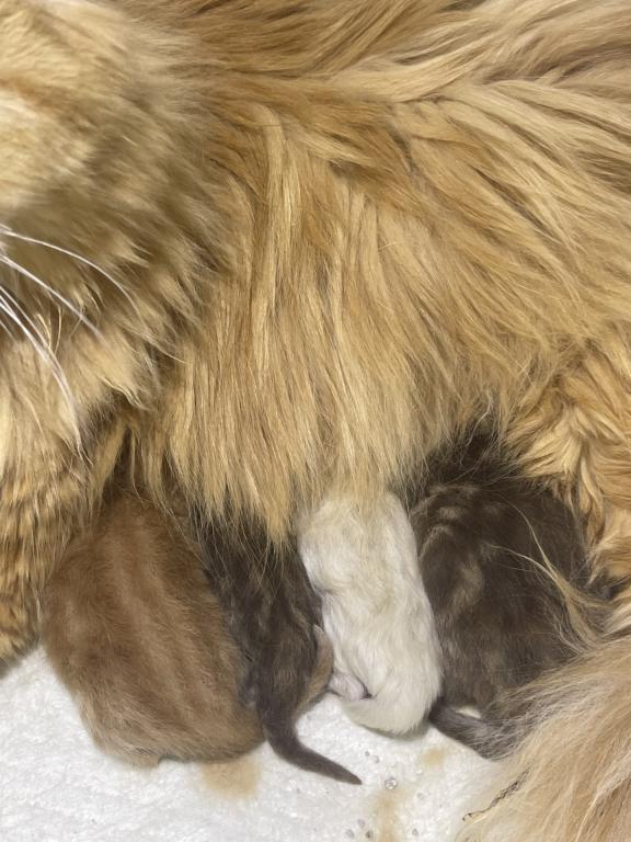 This litter is just born, and we must wait until kittens’ ears will be formed to folded or stay straight in 3-4 weeks from the date of birth. The Classic Red kitten is a boy; three other kittens are girls: two Classic Chocolate Torbies (with red) and one Blue Pointed (with blue eyes). For more details please contact Maria at (919)609-5106 (text/ call)
