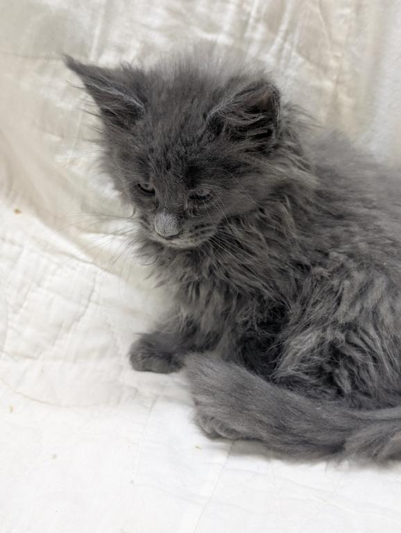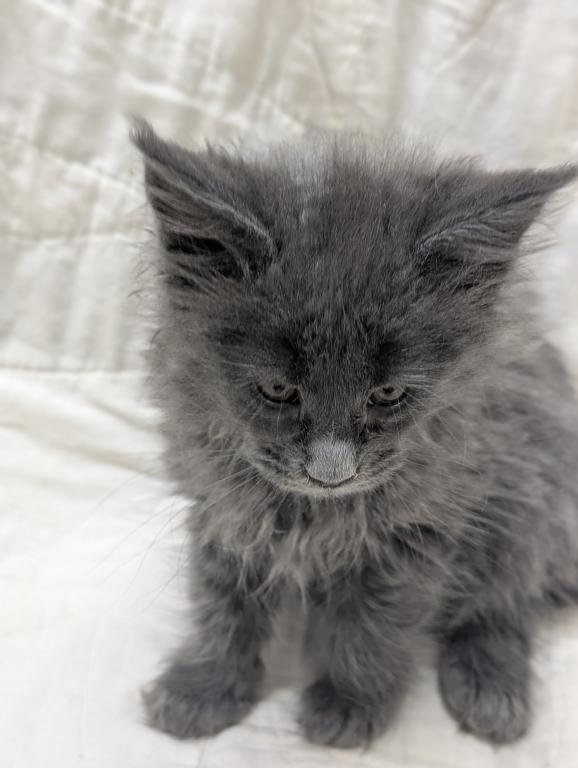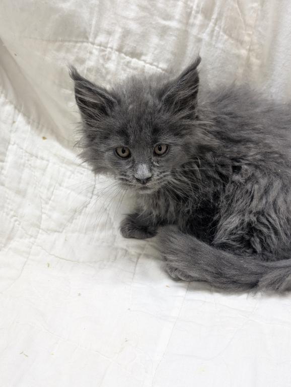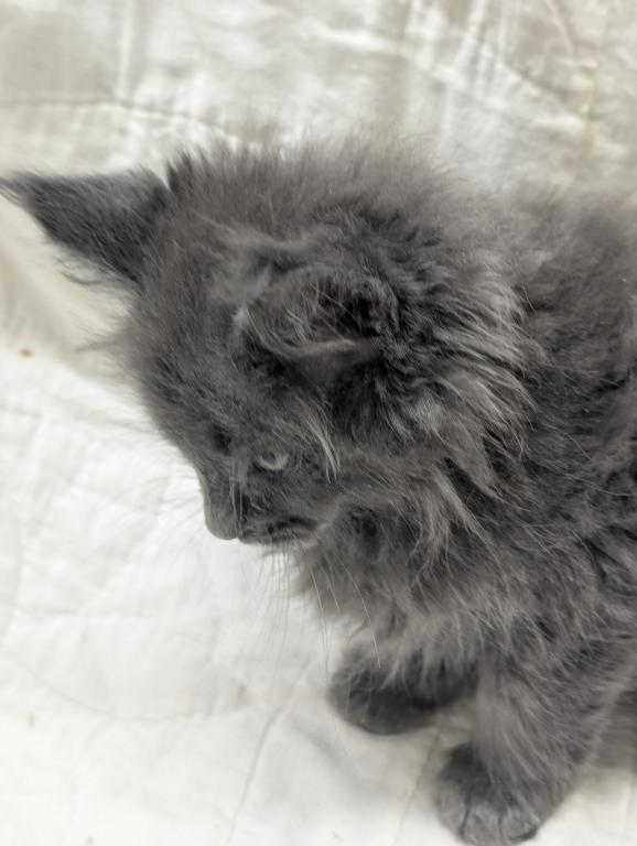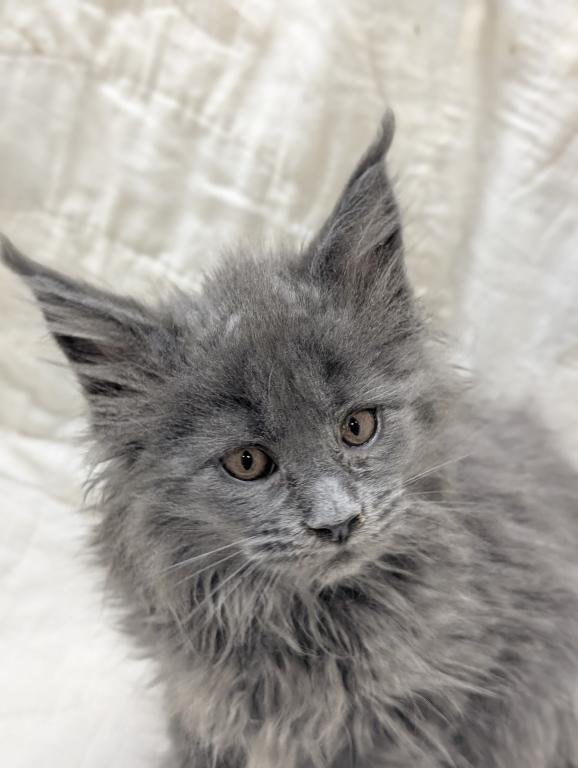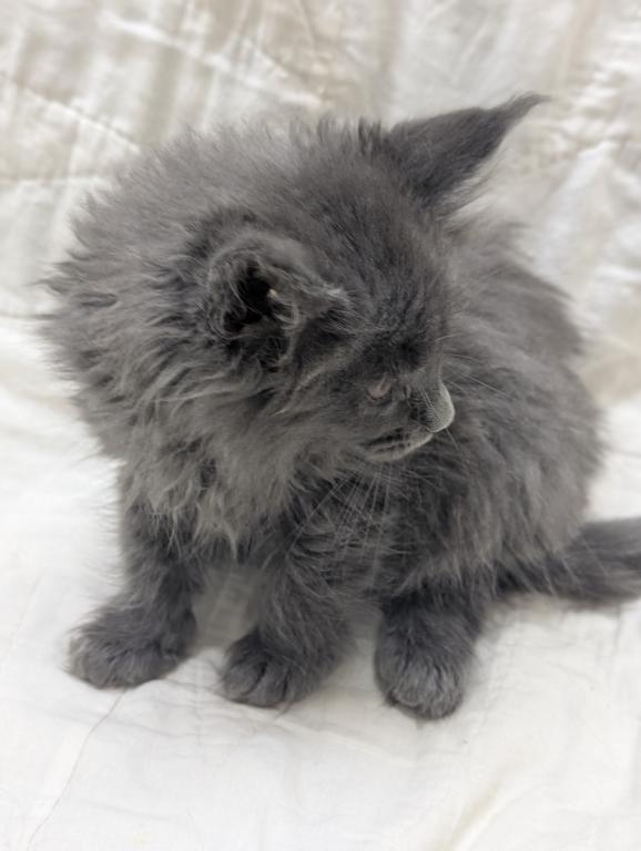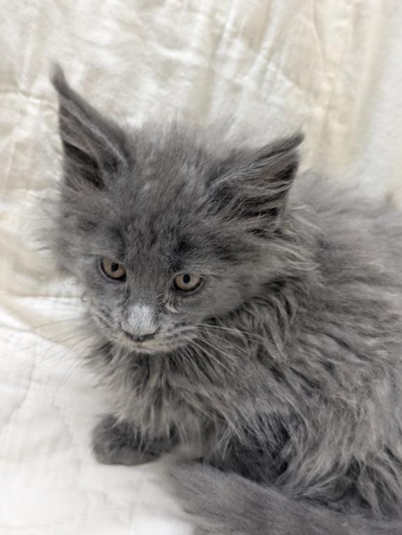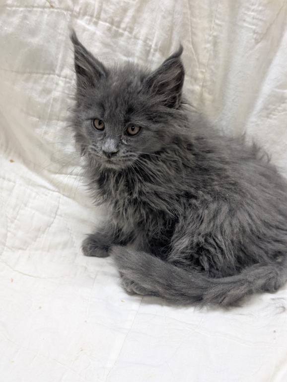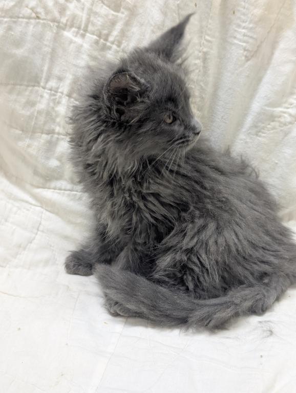 She playful and people oriented, very friendly, likes to be brushed and she's a very pretty blue girl. Long hair and tail and big straight up ears like she should have. Delivery or meeting available. Breeding Rights available.