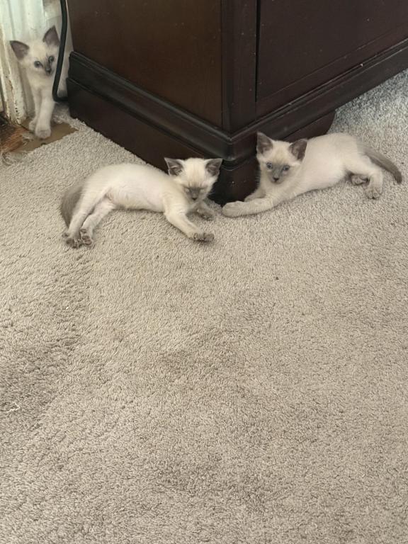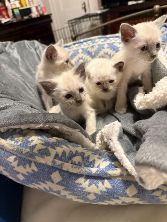These sweet kittens were raised in a small loving family home. They are use to human touch and other pets. 2 female and 2 male bluepoints.
