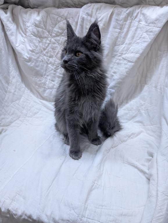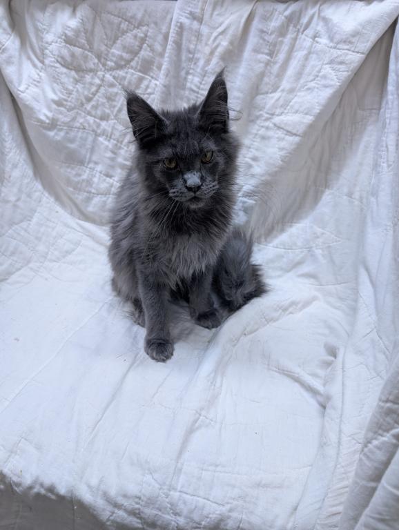 He's friendly and playful. Gets along well with other cats and kittens. Breeding Rights available but he'll make a great pet for a family or a single person as he loves attention. He's an unusual deep blue color. Delivery available.