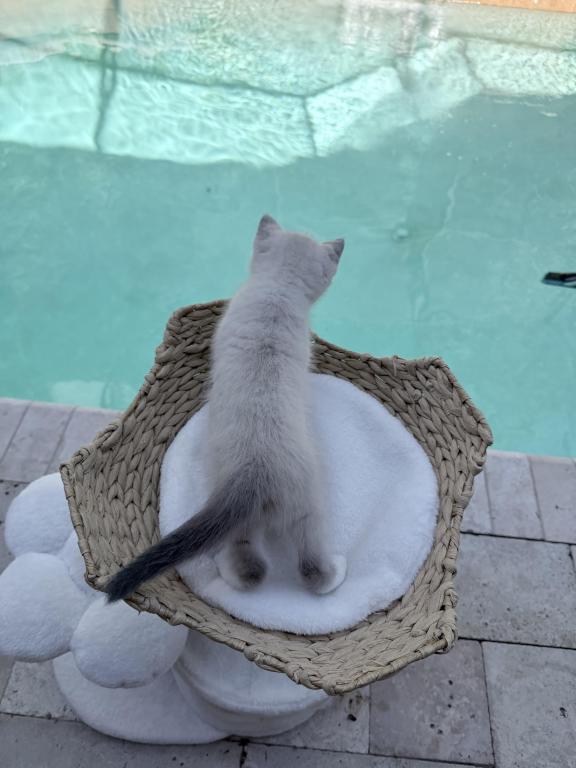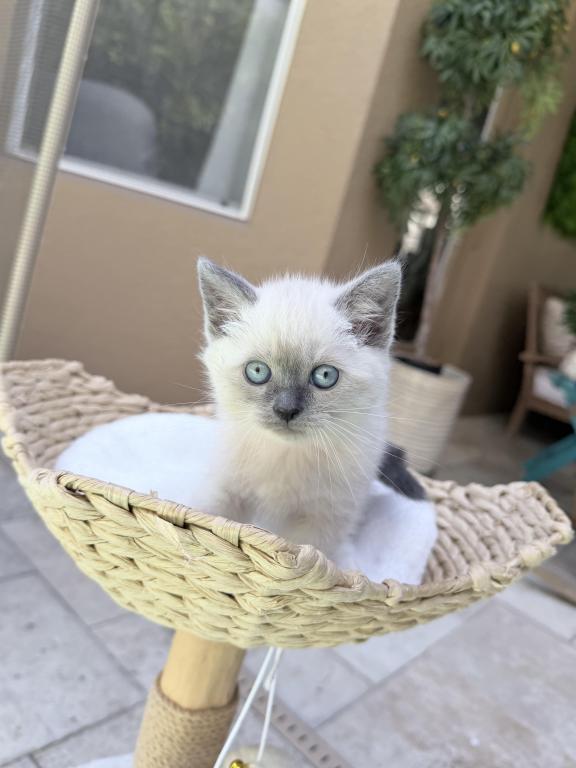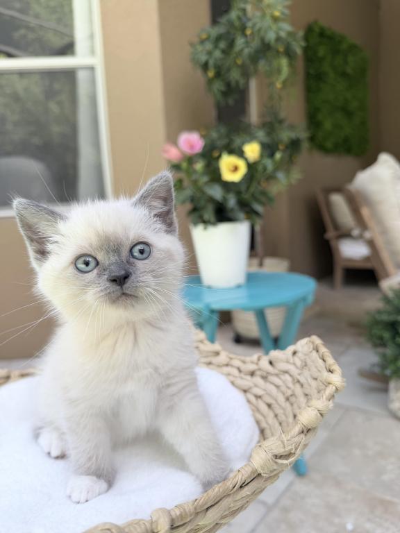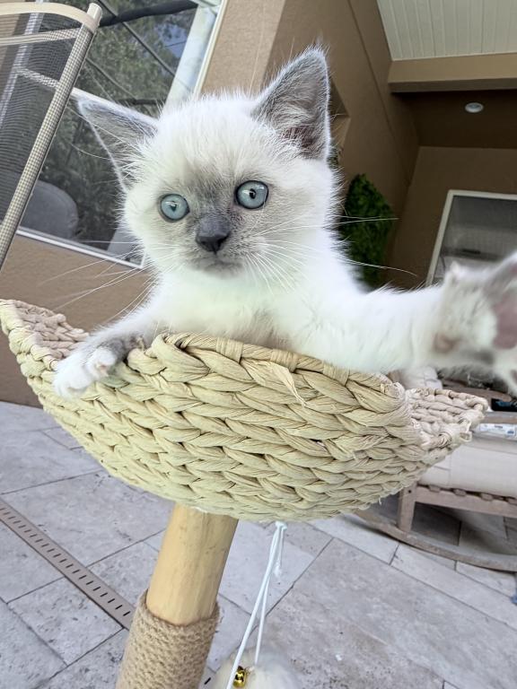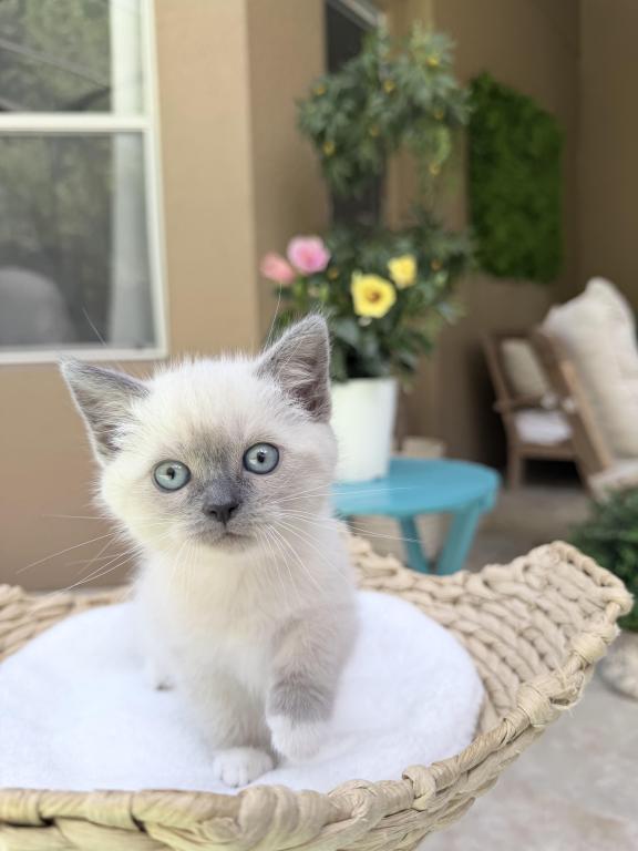 She's been raised in a loving HUGE suburban home with lots of love and interaction from our children. Their personalities are unmatched from large breeders and catteries. They are taught from a young age to be gentle, litter and scratched trained. Stunning blue eyes and coat patterns. Parents are selected for their disposition and DNA profiles.