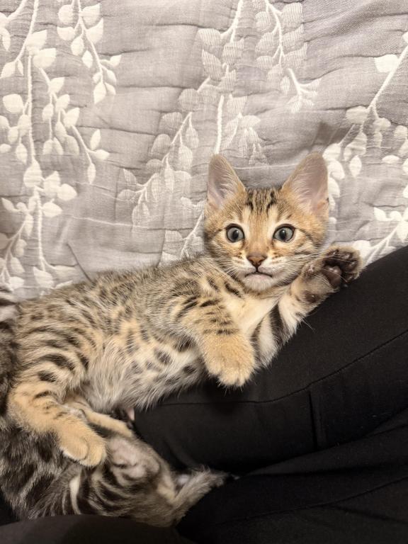 The kitten is healthy and has all age appropriate vaccines. Litter is registered in TICA. TICA breeder slip and health card are included.