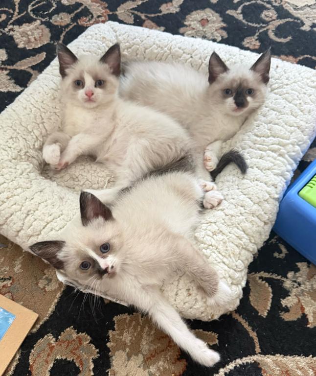 Snowshoe Ragamese is designer breed of Ragdoll and Siamese mix. I have one male and 2 females ready for their new homes. Kittens are very loving and very social. They are great with kids and other pets. Fully litter trained. Included in the photos is full grown cat from a previous litter.