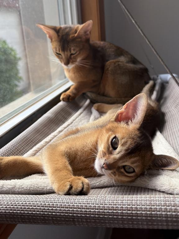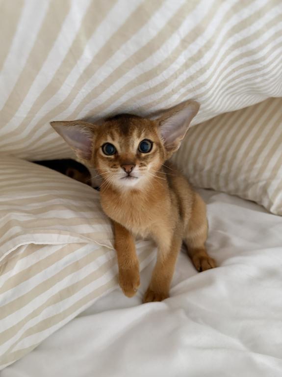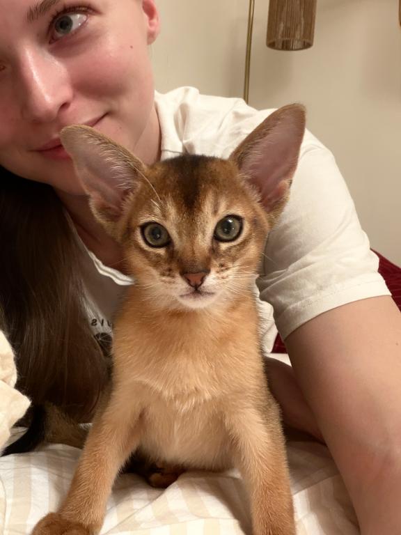 Sweet, affectionate, and very friendly Abyssinian boy. He is playtul, active, loves cuddles, sleeps near his person, uses the litter box, scratches on a scratching post, and is great with people and children. Born in New York