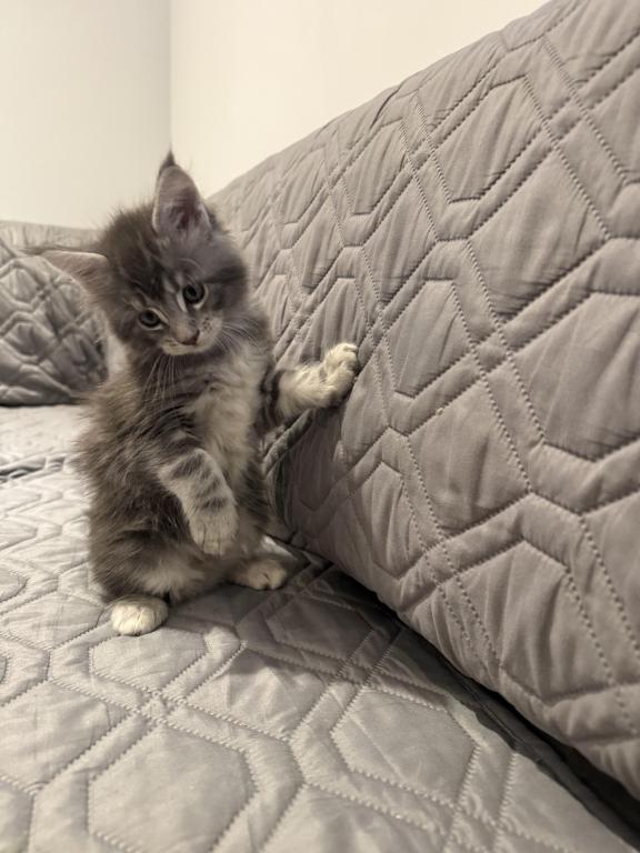 Maine Coon kitten – gentle, smart, and very affectionate. Loves people, gets along with kids and other pets, playful and easy to train. A perfect “gentle giant” companion for any home.