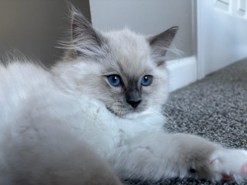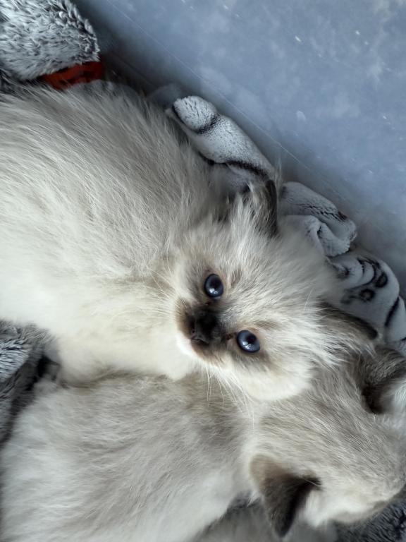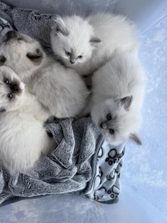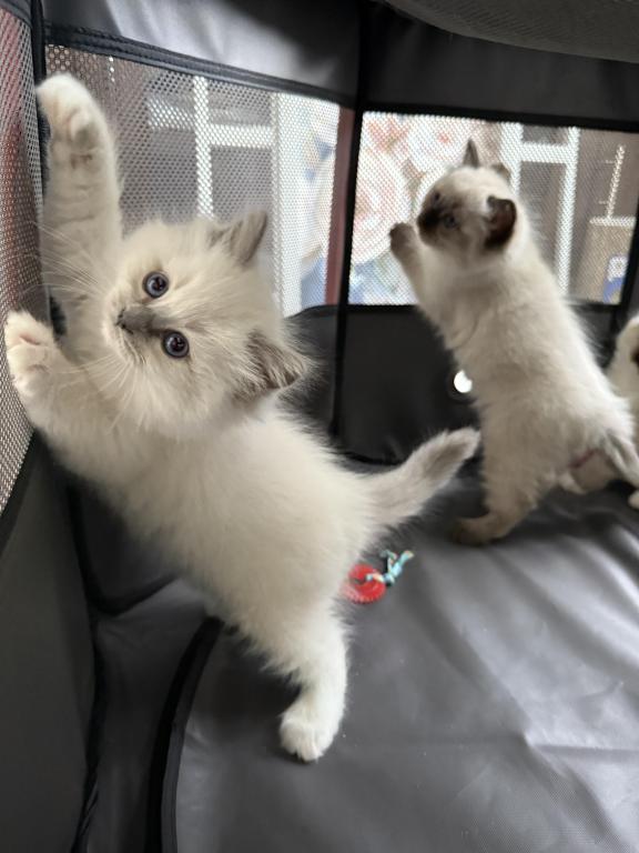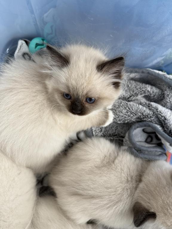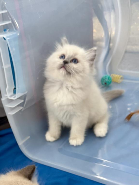 This Ragdoll litter is TICA registered. Dad is a two time WCF champion & mom has an excellent pedigree. Both parents are TICA registered. This litter is Blue Colorpoint & Seal Point. There are 3 females (one blue colorpoint & two seal points) also 3 males which they are blue colorpoint. They leave around May 22nd. Each are $1,000.