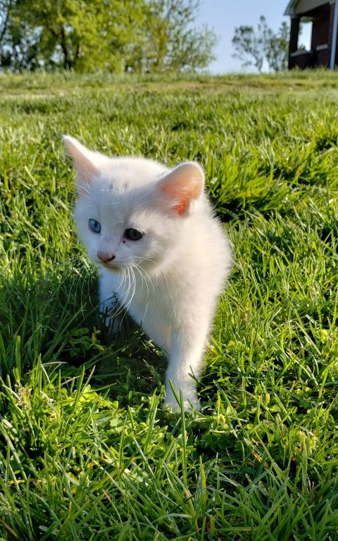 Odd eyed lovers- here you are go! Corey is white with 2 little black marks on his forehead. He will be ready next week. Text me at 812-296-1596 for more info about this kitty.