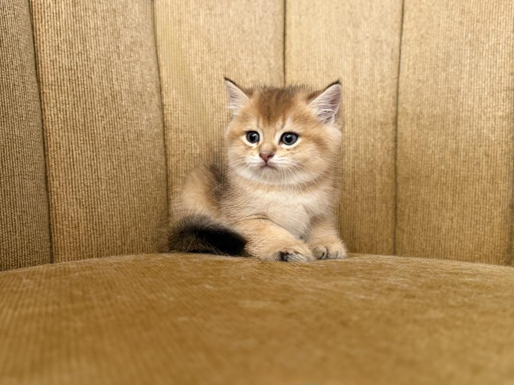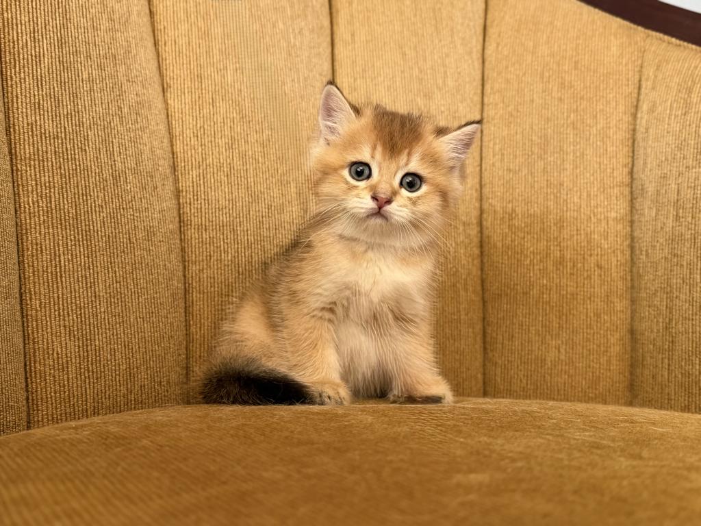 Male Scottish Straight kitten with a beautiful golden shaded coat and bright blue eyes. Very sweet, calm, and affectionate personality. Raised at home with lots of love and daily human interaction, well-socialized and used to household environment. He will come with age-appropriate vaccinations, full health check, and Florida Health Certificate.