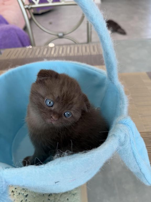 Meet your new purring family member! :) This little bundle of joy would love to become a part of one good and caring family. He is purebred Scottish Fold, born March 12, 2026. He is very playful and affectionate, loves attention and willing to play all day long:) Videos are available, text me and I’ll send them to you.