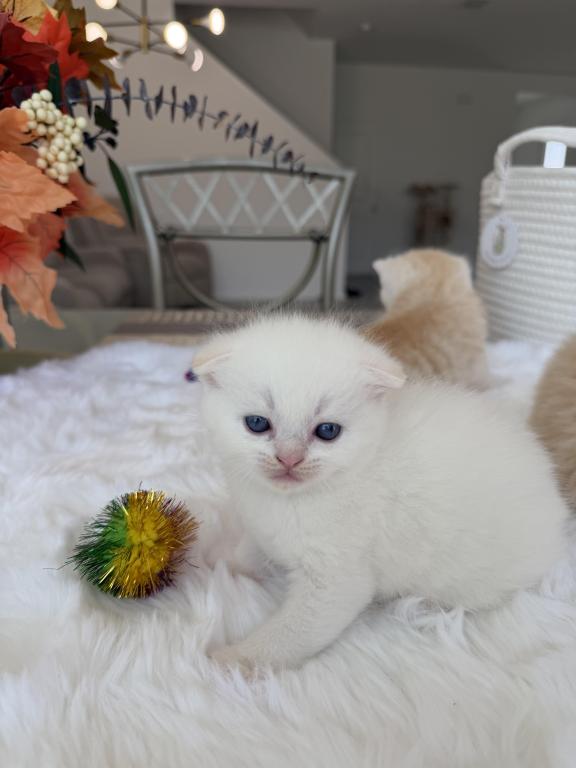 Meet your new purring family member! :) This little bundle of joy would love to become a part of one good and caring family. She is purebred Scottish Fold, born March 20, 2026. She is very playful and affectionate, loves attention and willing to play all day long:) Videos are available, text me and I’ll send it to you.