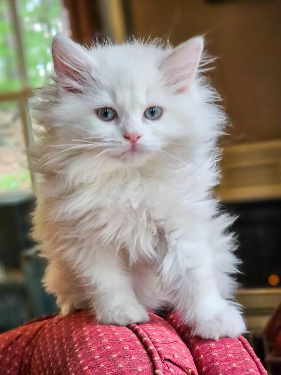 This sweet boy has the most beautiful long puffy coat and he has such a sweet temperament. He would do well with other pets and children.