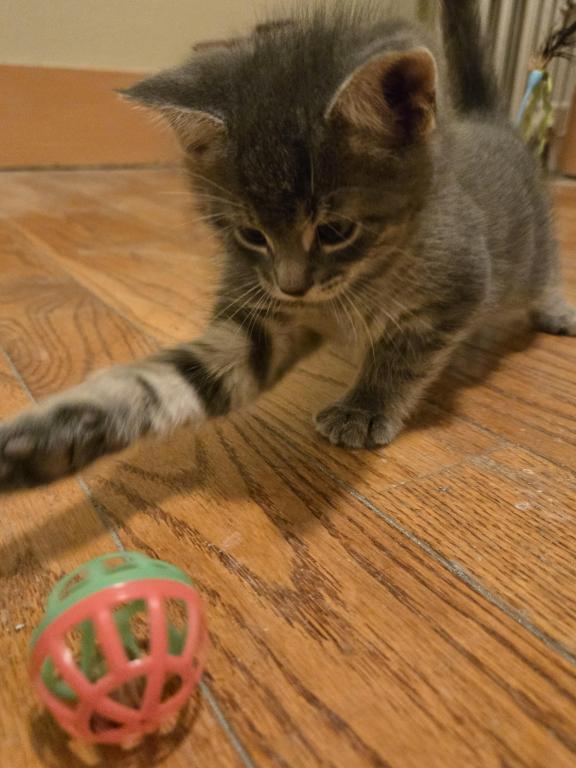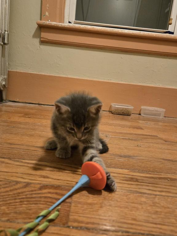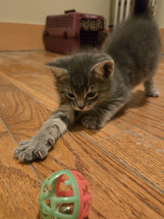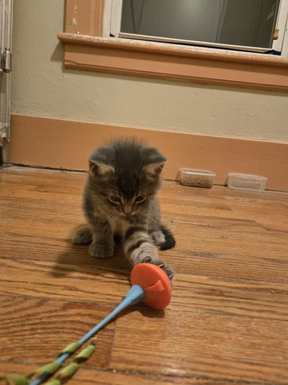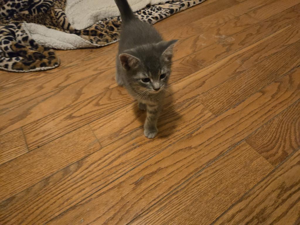 He is very friendly, loves attention.Loves to follow you around. He is looking for his forever home.