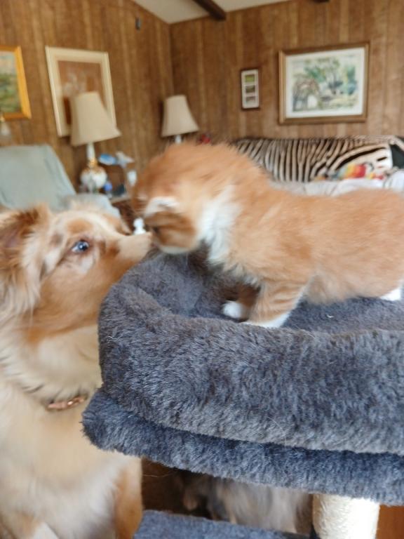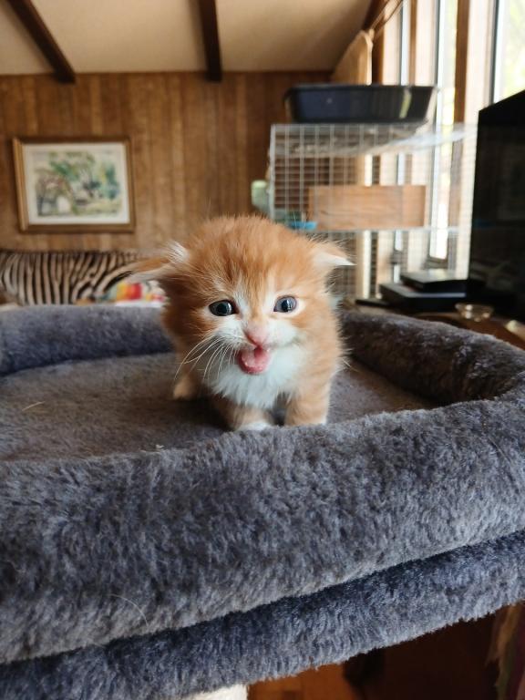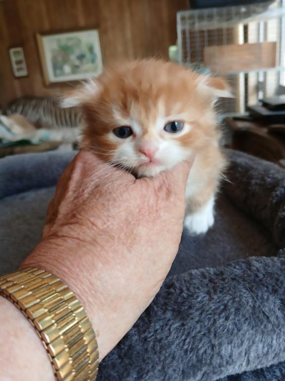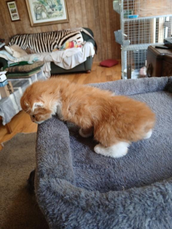 This guy is not only a Scottish Fold but manx as well. Very mellow and sociable. He is great with our Australian Shepards. He will be wormed before pick up. Videos can be seen on my Facebook page Barbi Brown's Fur Babies