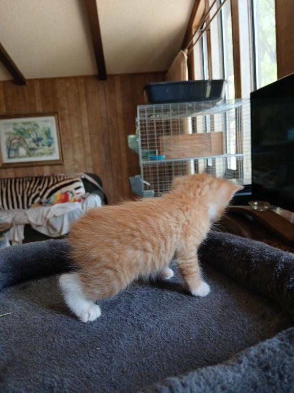 These guys are mellow and social. They love my Australian Shepards and expect kisses every morning. He is a Scottish Straight manx. He will be wormed. Videos available on my Facebook page Barbi Brown's Fur Babies.