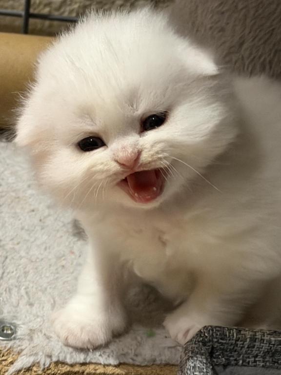 Mr green is an adventurous little tike. He hops around and scales our CatKing pole tree in the kitchen with no issue. He’s a lover as well and is always down for a good pet. He’s a fluffy boy, so grooming will be needed in his future.