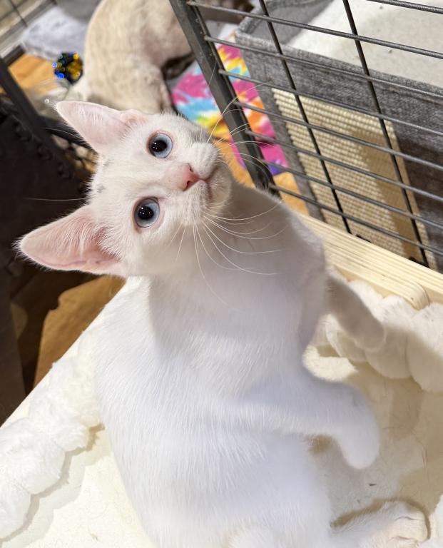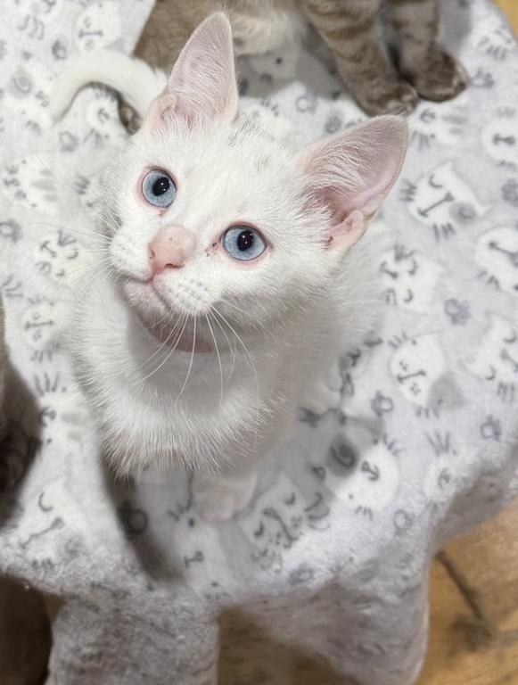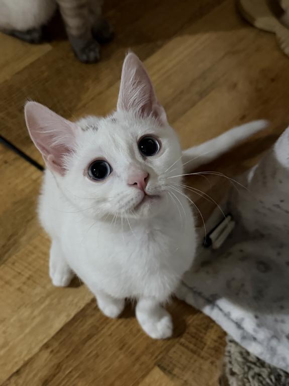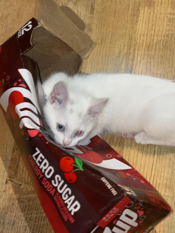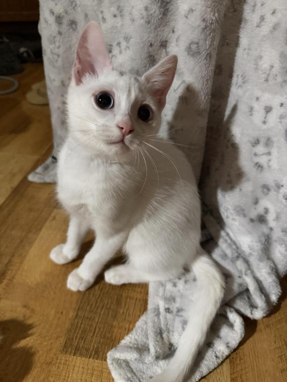Elle is an older kitten. Last one left from a mixed litter. Mom is Bengal and Dad is a British Shorthair. She is taking after her mother. Very lean and sporty. She chases wand toys SUPER fast. She’s gone for a couple long rides to houses already where she was either not chosen or they flaked altogether. Needless to say she’s pretty good in a car now and slept in my arms (having to switch off because I was driving) for an hour or more haha. She’s not scared of much but is leery of strangers to start.