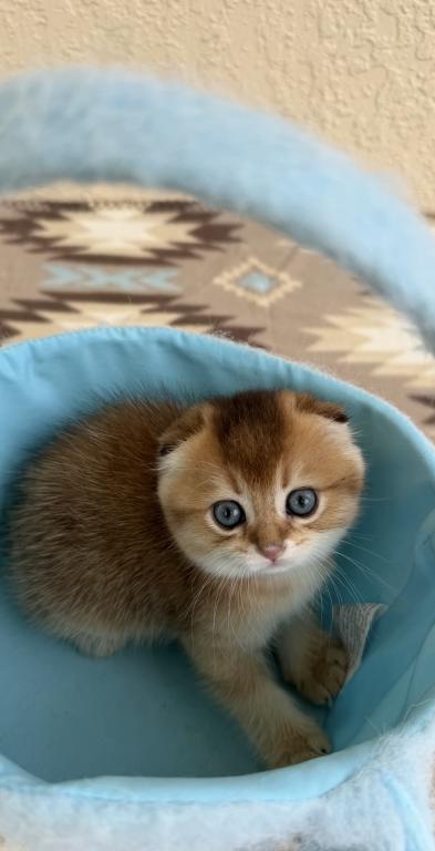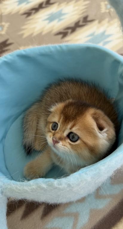 Meet your new purring family member! :) This little bundle of joy would love to become a part of one good and caring family. She is purebred Scottish Fold, born March 03, 2026. She is very playful and affectionate, loves attention and willing to play all day long:) Videos are available, text me and I’ll send it to you.