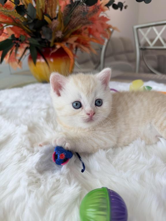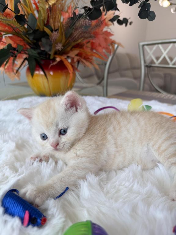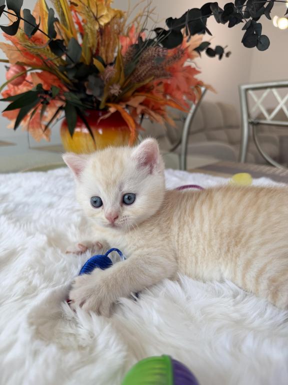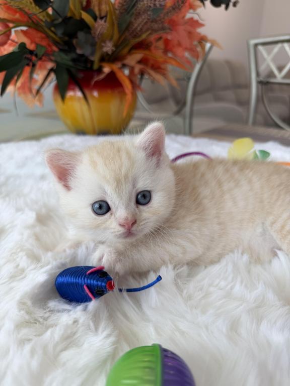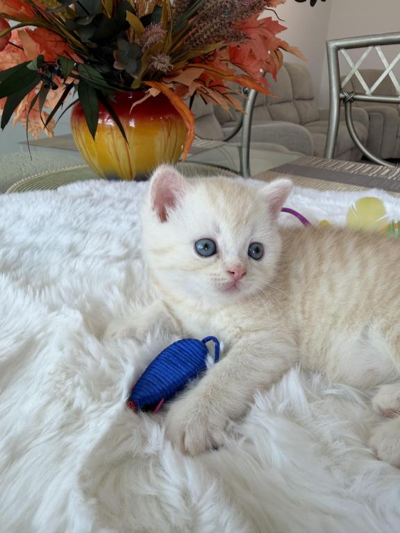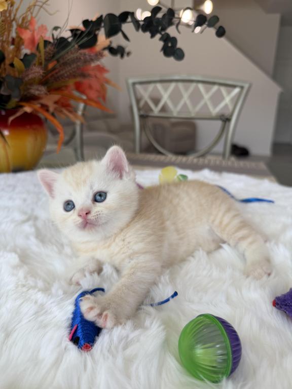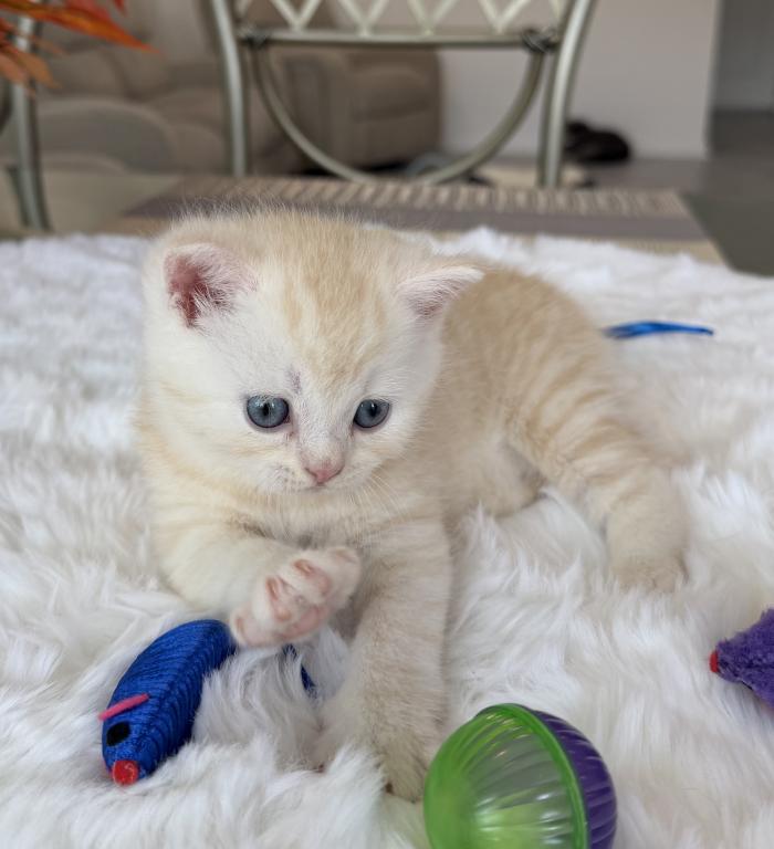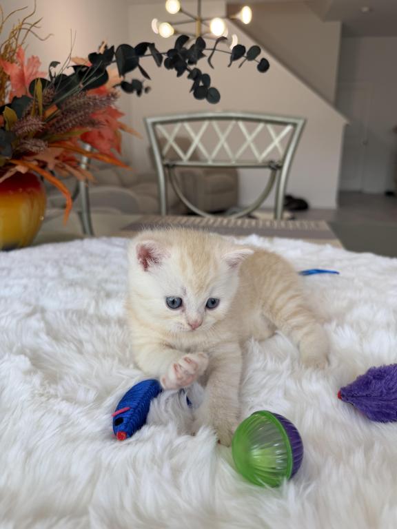Meet your new purring family member! :) This little bundle of joy would love to become a part of one good and caring family. He is purebred Scottish Straight, born March 20, 2026. He is very playful and affectionate, loves attention and willing to play all day long:) Videos are available, text me and I’ll send it to you.