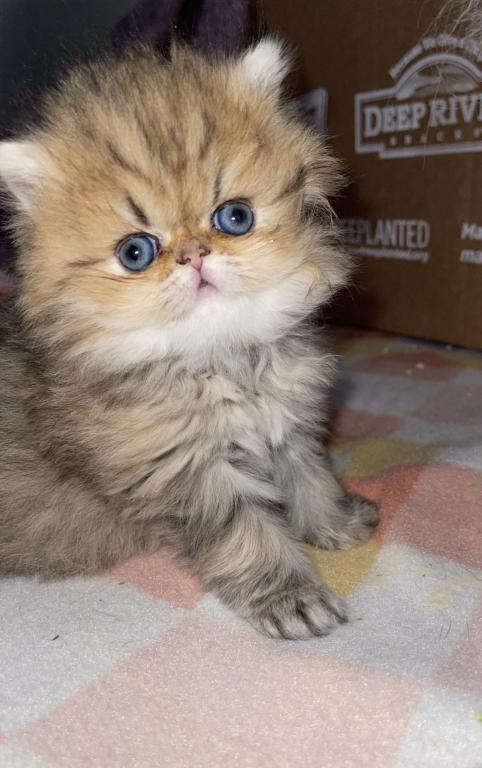 A rare jewel, bred from the distinguished Madcat × Blue Blue champion lineage, this chocolate golden Persian is the embodiment of quiet luxury and refined beauty.