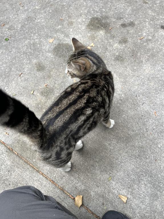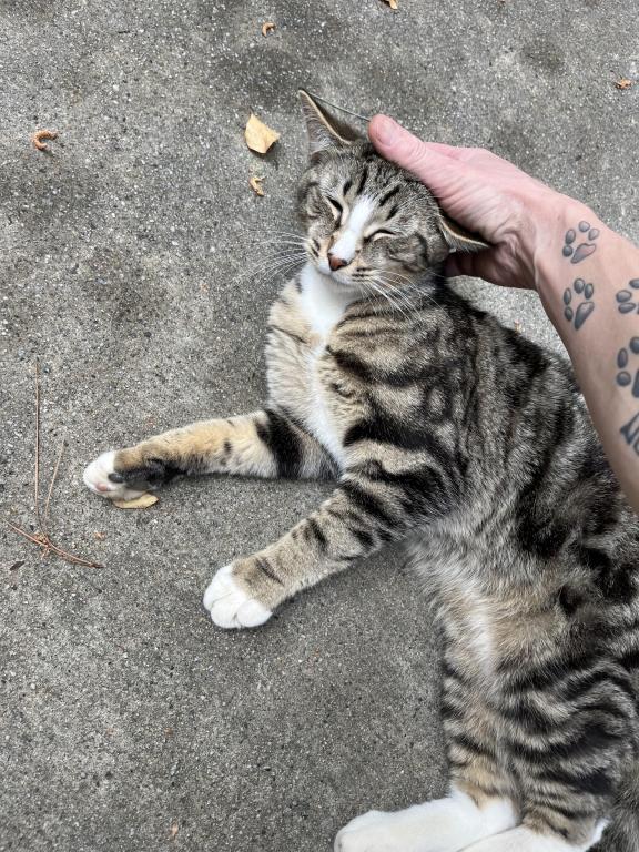 This is Kurtis. He’s less than a year old. He is an absolute love bug. His mom brought he and his brother into my garage when they were about 3 weeks old. He was very timid at first, but eventually came around to accepting pets. Now, after several months of working with him, pets are his favorite thing. Kurtis discovered belly rubs and has never looked back. He’s gentle, he’s kind, he’s friendly to others, he’s very well behaved, and he’s incredibly sweet. He and his brother, Slouch, are each other’s best friend. They’re truly a bonded pair and would need to be adopted together. If you’re interested in adopting these handsome young brothers, and have prior experienced with cats, please reach out to me. Thanks