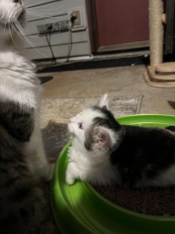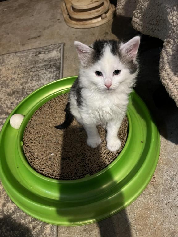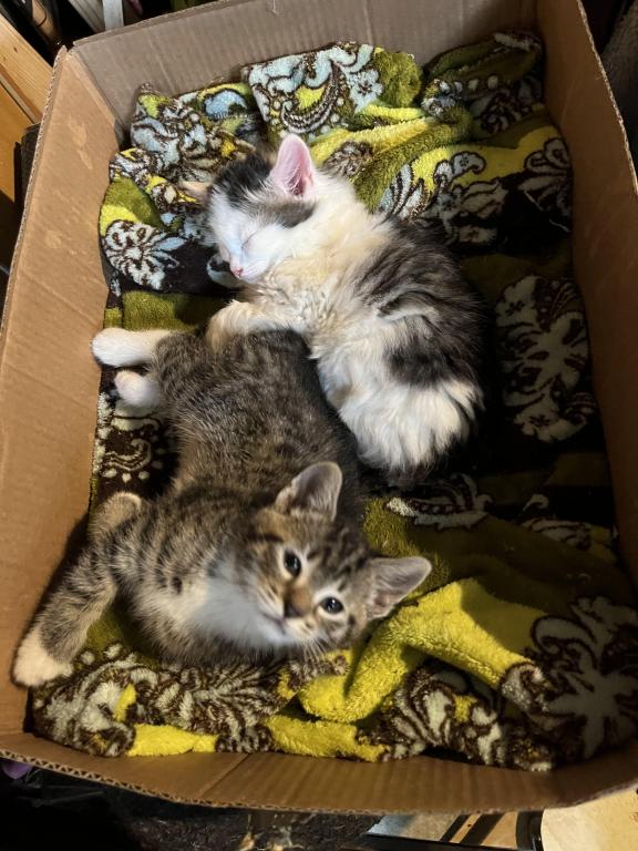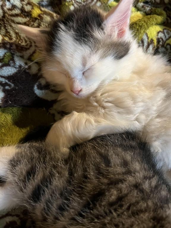 We have 4, five week old kittens. 3 girls, 1 boy. The boy is the bigger white and black kitten. So far, these babies live in my garage with their mother who is a stray. They’re still nursing, but have started eating kitten wet food. They will be ready for adoption in about two weeks. These 4 will have to be adopted as pairs. I’d like to find a home for each pair. Curly is closest with Grumpy. But I know she’ll be just fine as long as she gets to stay with one of her siblings. They’re all adorable. They’re beautiful, they’re cuddly and cute, and they will definitely make great companions to anyone looking to adopt and raise them. Serious inquiries only, please! If you are interested and have prior experience raising cats, please reach out to me asap.