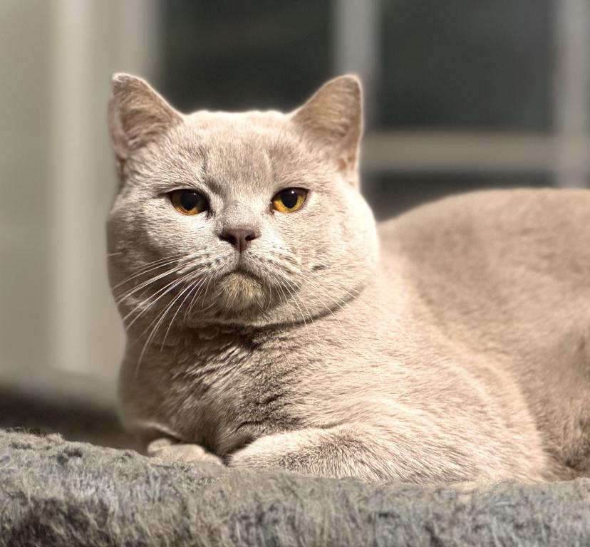 We have a gorgeous lilac male British Shorthair available, with a stunning plush coat in this highly sought-after soft, silvery tone and the classic round features that make this breed so special. He has a calm, affectionate temperament and a confident, easygoing personality, making him a wonderful companion.