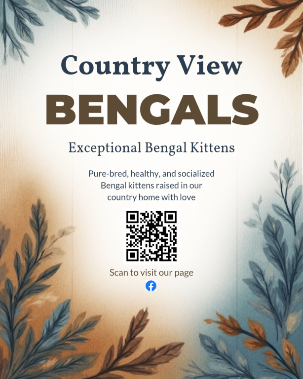 Also visit our Facebook page “Country View Bengals” to see pictures of available kittens and ones from previous litters.