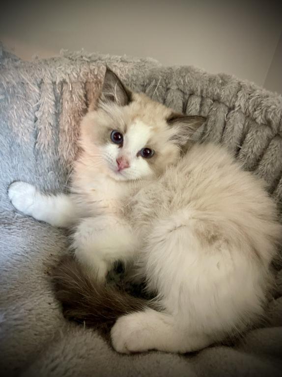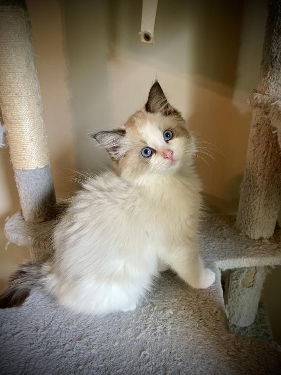This is a sweet seal point bicolor male that is adorable and will make a wonderful companion. His parents are Joy & Blue. He was neutered 4/20/26. He’s up to date on shots & deworming.
