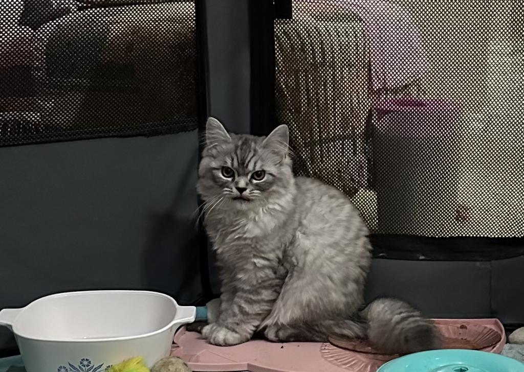 He loves other cats, but he will be scared at first. He is only used to me and other cats! He is a very rare silver Persian.