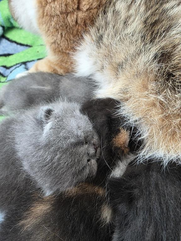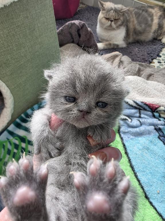 Posh is a very sweet girl. At just 2 weeks she is just getting to know the world around her. She loves being held and purrs when she nurses.