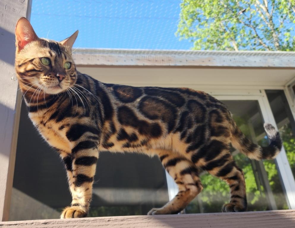 Father Joker is a Champion titled show stud and was Tica's 3rd Best brown spotted tabby bengal of the year in 2024 !