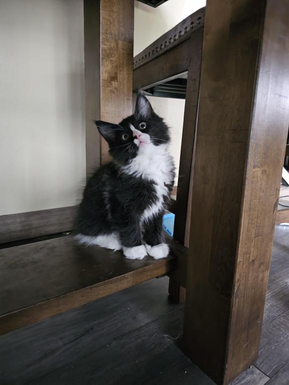 He is very curious, always checking out what the humans are up to. He likes to be held and pet.