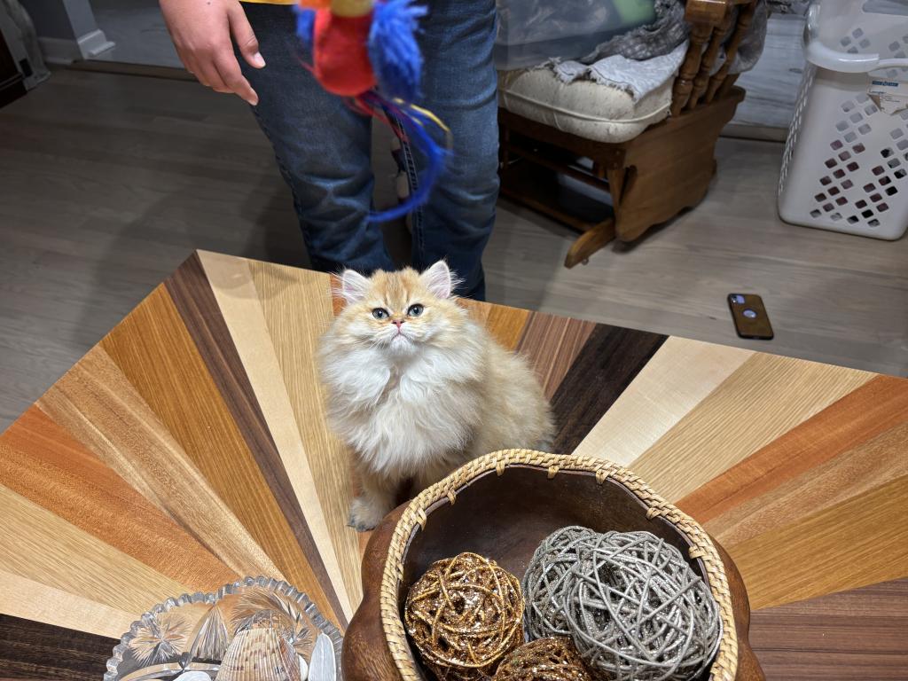 Kelly is active, healthy super sweet and playful with age appropriate vaccinations and deworming. She is well socialized and loves her lap time and cuddles. She is spayed, microchipped and vaccinated and will come with a carrier and sample of food. She is also litter box and scratch pad trained. All of my kitties are TICA registered and pedigreed and are guaranteed to arrive heathy and have a 1 year guarantee against congenial malformations. Please enjoy the pictures of her and if you would like to see her in person or via video chat let me know. For more information or to make Patch part of your family today please contact me or visit my website at www.tmzkittenznkatz.com. Mention GO KITTY to receive this discounted price.