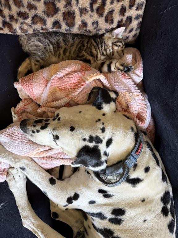 Ashley definitely has her spurts of playfulness, but she also LOVES to sleep and sleep hard. She loves to cuddle up next to someone whether it be another animal or human and take her a good nap.