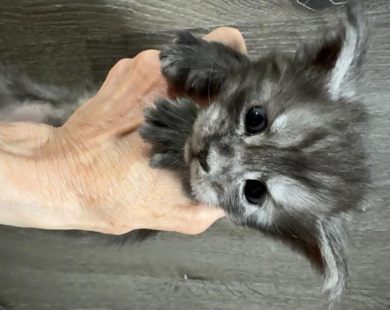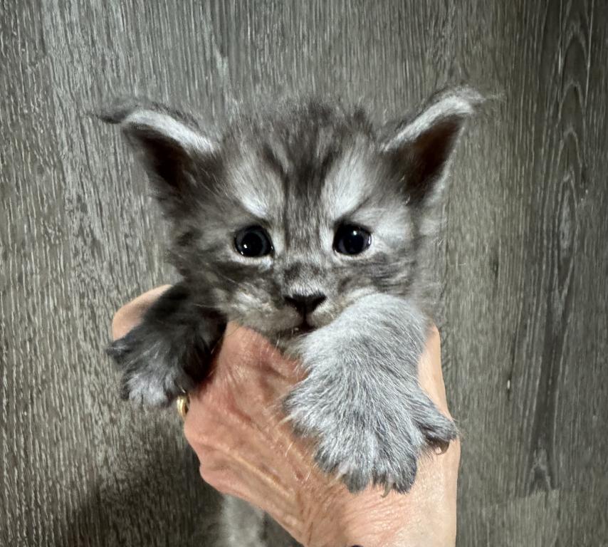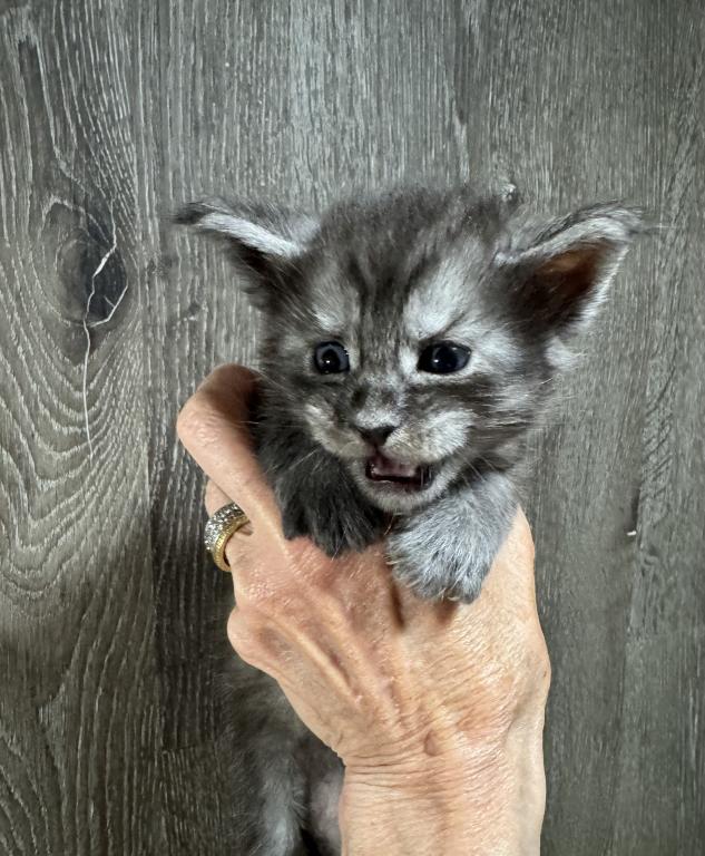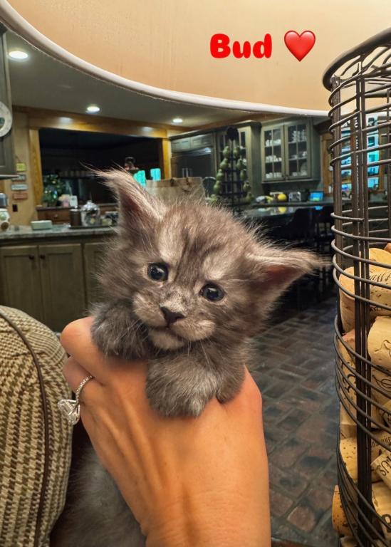 Bud comes from a litter of 5 kittens. He is our biggest boy and such a love. These kittens are from European Maine Coon breeding. They love to play together and enjoy time with mom Queen Esther aka Estella and King Zeus aka Sully.
