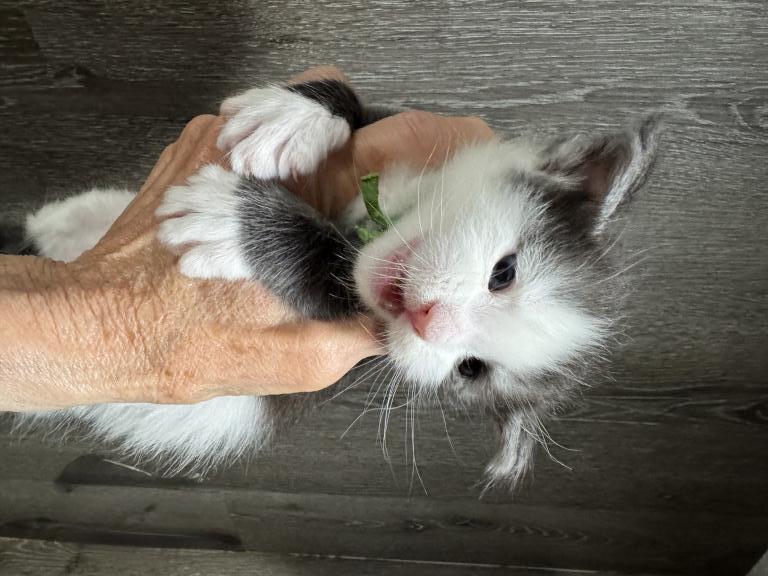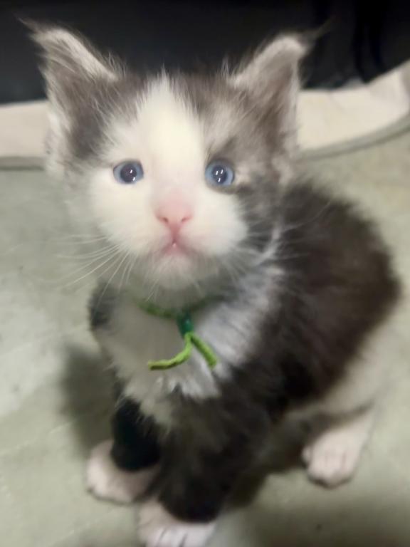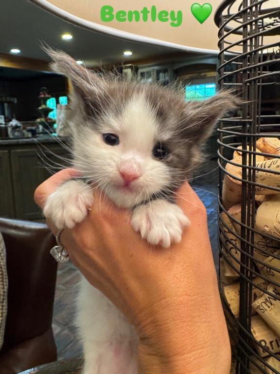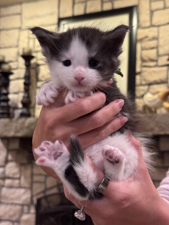 Bentley comes from a litter of 5 kittens. He has stunning features and I’m sure will be incredible like his dad. These kittens are from European Maine Coon breeding. They love to play together and enjoy time with mom Queen Esther aka Estella and King Zeus aka Sully. Bentley has beautiful blue eyes just like his dad.